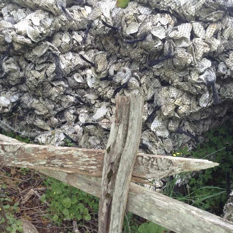 We heat our house with wood, and I have used wood ash lye for both soap making and indigo vats. However, I had concerns about trying it for the indigo extraction process. I also didn’t think that burning seaweed to make soda ash sounded practical, especially as soda ash also doesn't work well as a flocculant. So ixnay on seaweed and wood ash lye. Of all the other alkali options, oyster shells seemed the best, and most iconic, choice for our purposes.
