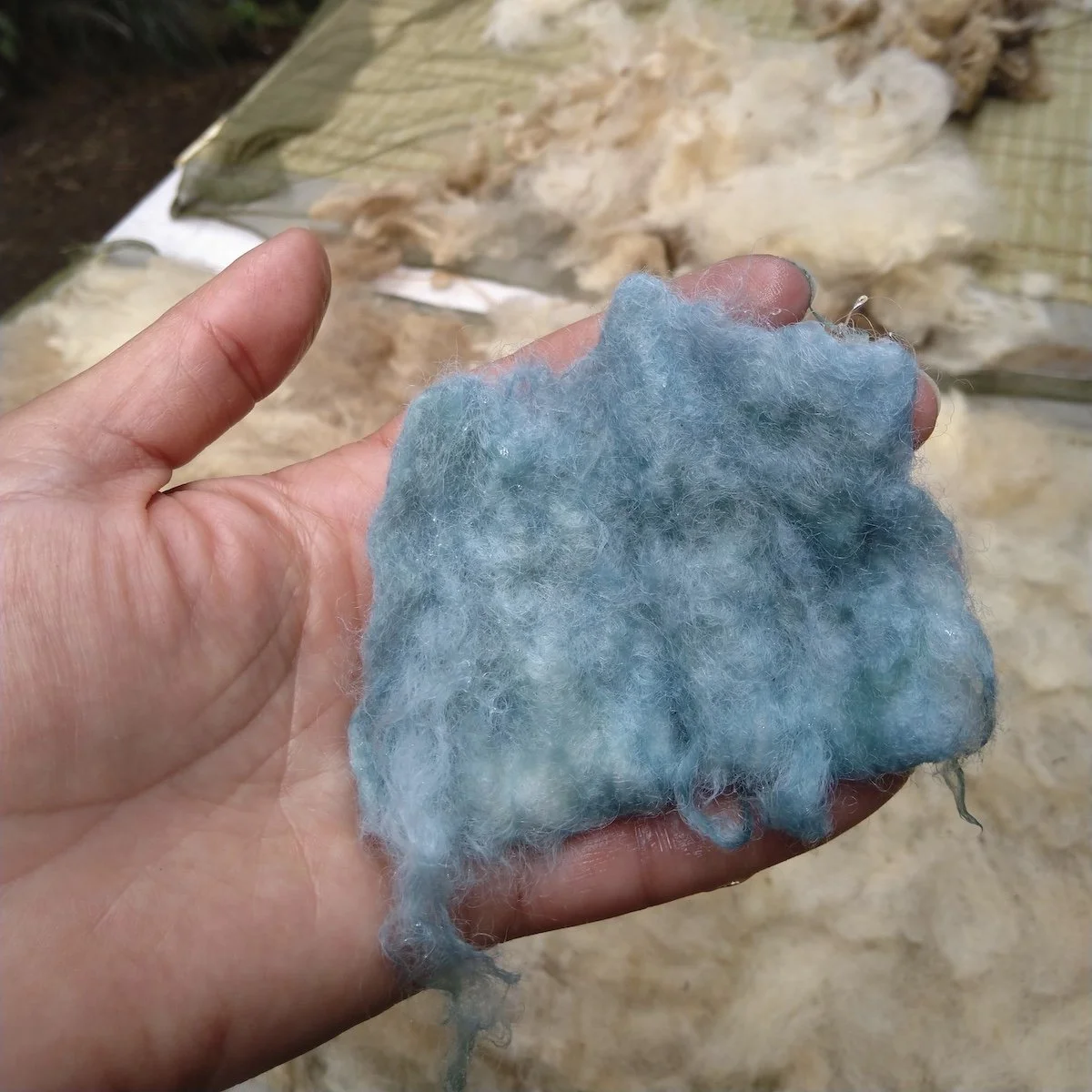 Dyeing with a vat of home grown and gathered ingredients, brought up such immense gratitude to me for all my indigo teachers, including the generous elder dyer I was fortunate to meet in Laos while visiting there with my mentor Michelle Wipplinger in 2005. The bunny wool bracelets were a nod to the cotton string bracelets we received on that trip during a welcome ceremony from the weavers and dyers of Laha Nam. Dyeing with my own pigment also brings a wonderful sense of connection to my ancestors who were weaving and dyeing with woad in Ireland, and to all the many indigo dyers of the past, present, and future.
